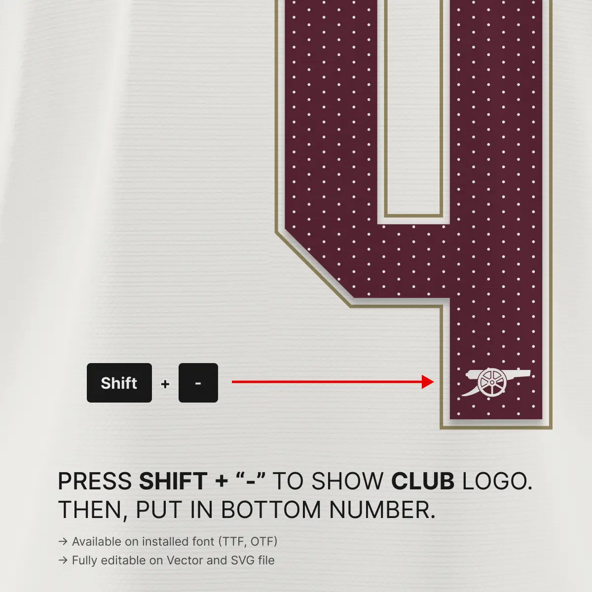 Arsenal 2025/2026 UCL & Cup Font Kit – Official Jersey Typeface