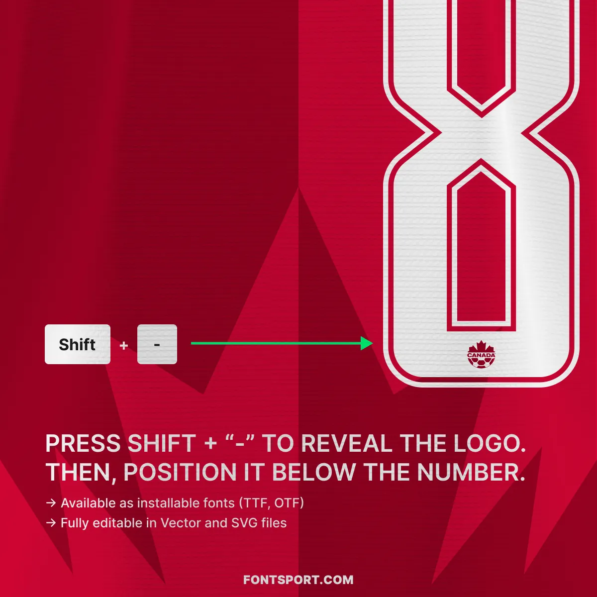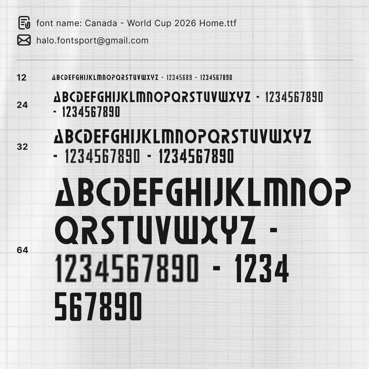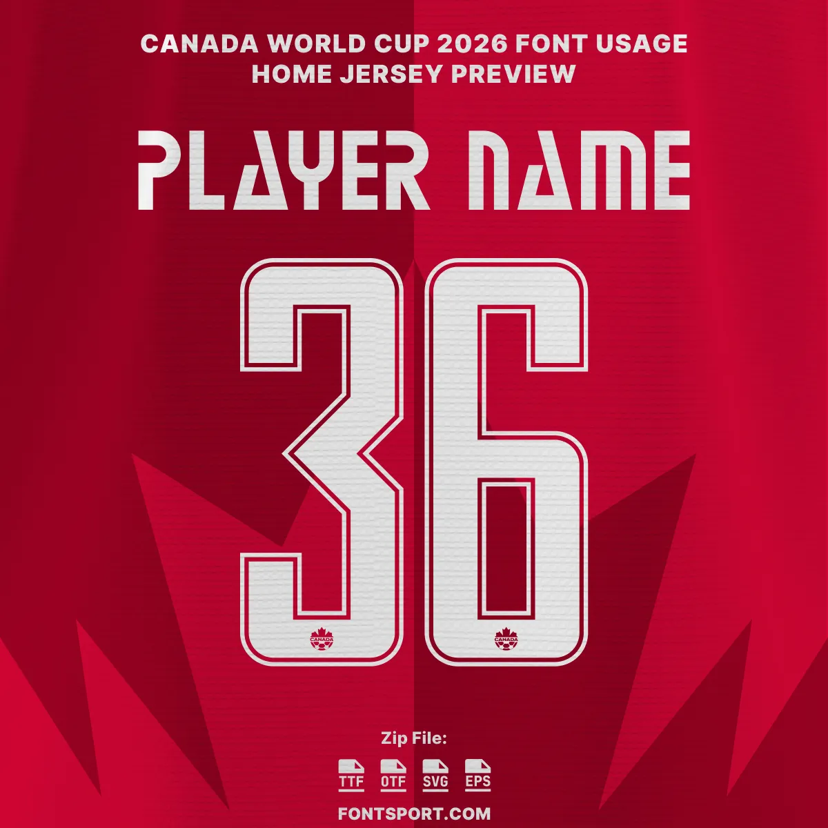This Canada World Cup 2026 Home Font Kit is an independent design resource created for fans, mockup artists, and football designers. However, it is built to closely reflect the structure, spacing, and visual rhythm seen in Canada’s 2026 home shirt lettering.