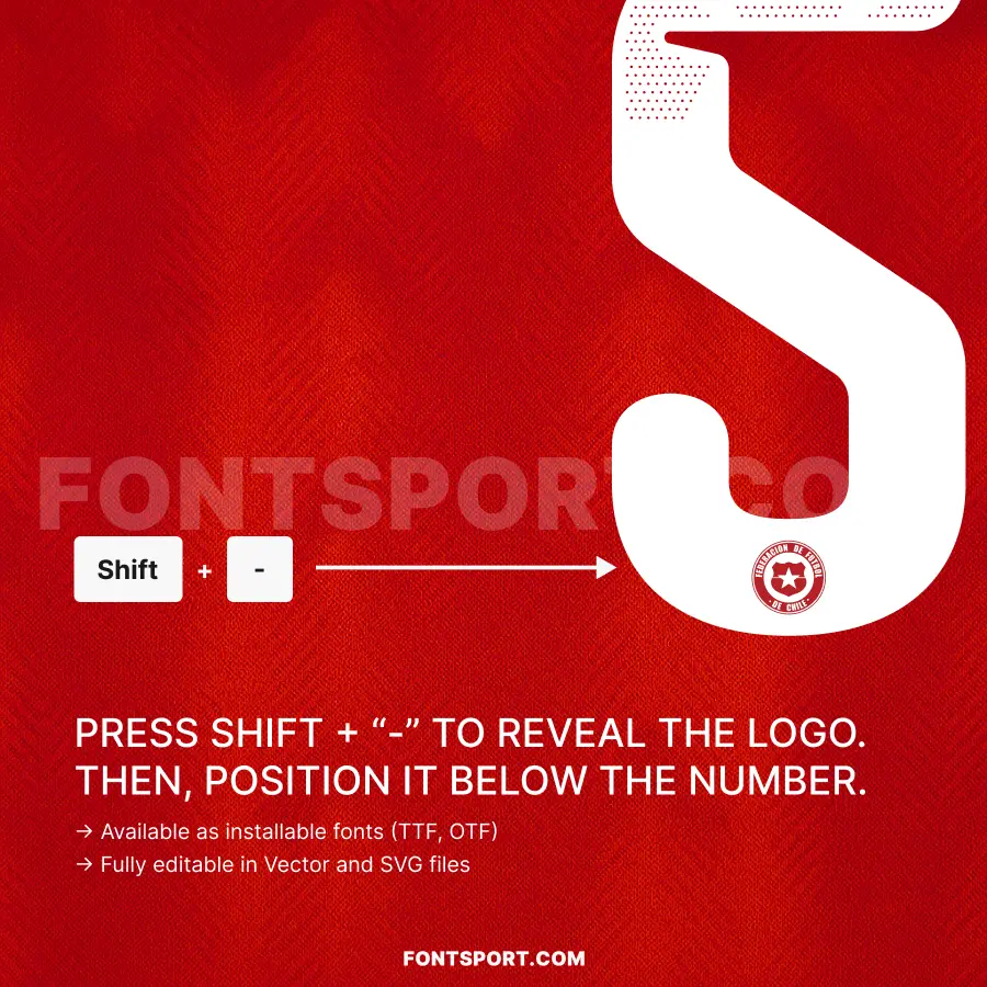 The Chile home kit is known for its iconic red base, and this font captures that same bold spirit. With accessible formats and strong readability, you can adapt it for match-day artwork, event banners, packaging, or creative football merchandise.