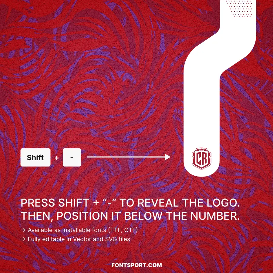 This Costa Rica World Cup Home 2026 Font Kit is not an official product of the Costa Rica national football team or FIFA. It is a fan-inspired font kit, created to reflect the team’s upcoming home jersey style and used for creative projects, design work, and fan merchandise.