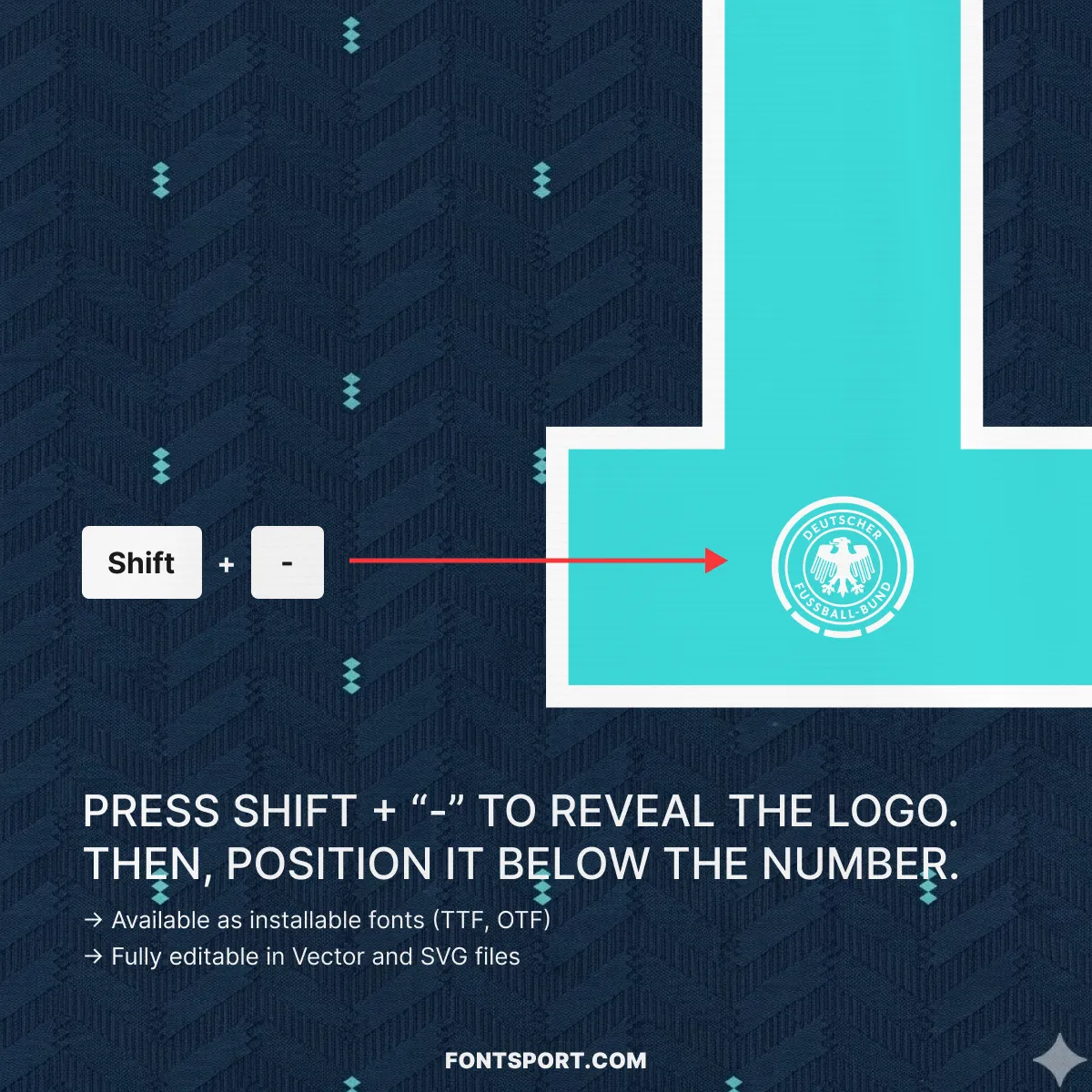 - ✅ DFB eagle crest glyph (Shift + “-“) for shirt-accurate number presentation