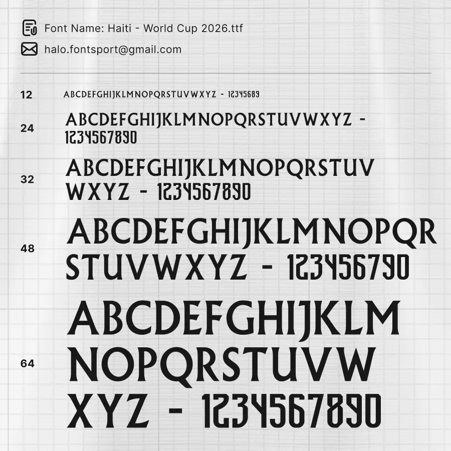 The Haiti World Cup Home 2026 Font Kit is not an official product of the Haitian Football Federation, FIFA, CONCACAF, or any affiliated organization. This font is an independent, fan-inspired typeface created to reflect football culture and design trends.