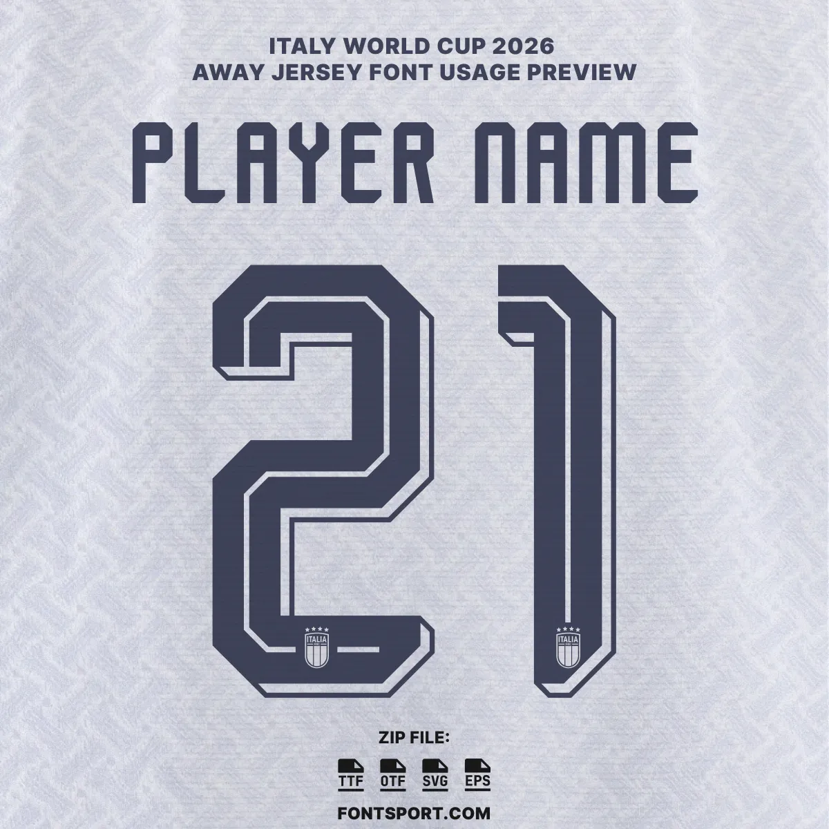 - ✅ Full uppercase A–Z & numbers 0–9 in Italy’s 2026 away kit style