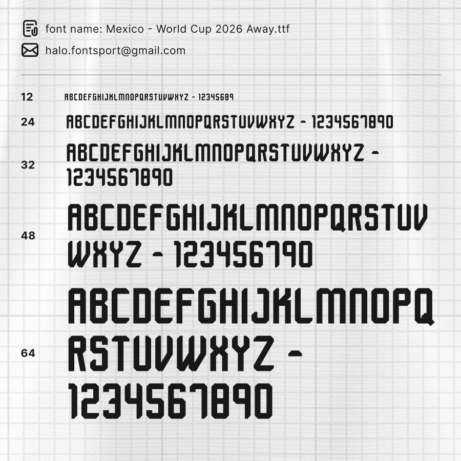 This font kit is not affiliated with FMF, Adidas, or FIFA. It’s a fan-made recreation inspired by Mexico’s 2026 away-kit typography—crafted for creative, personal, and non-commercial design projects.