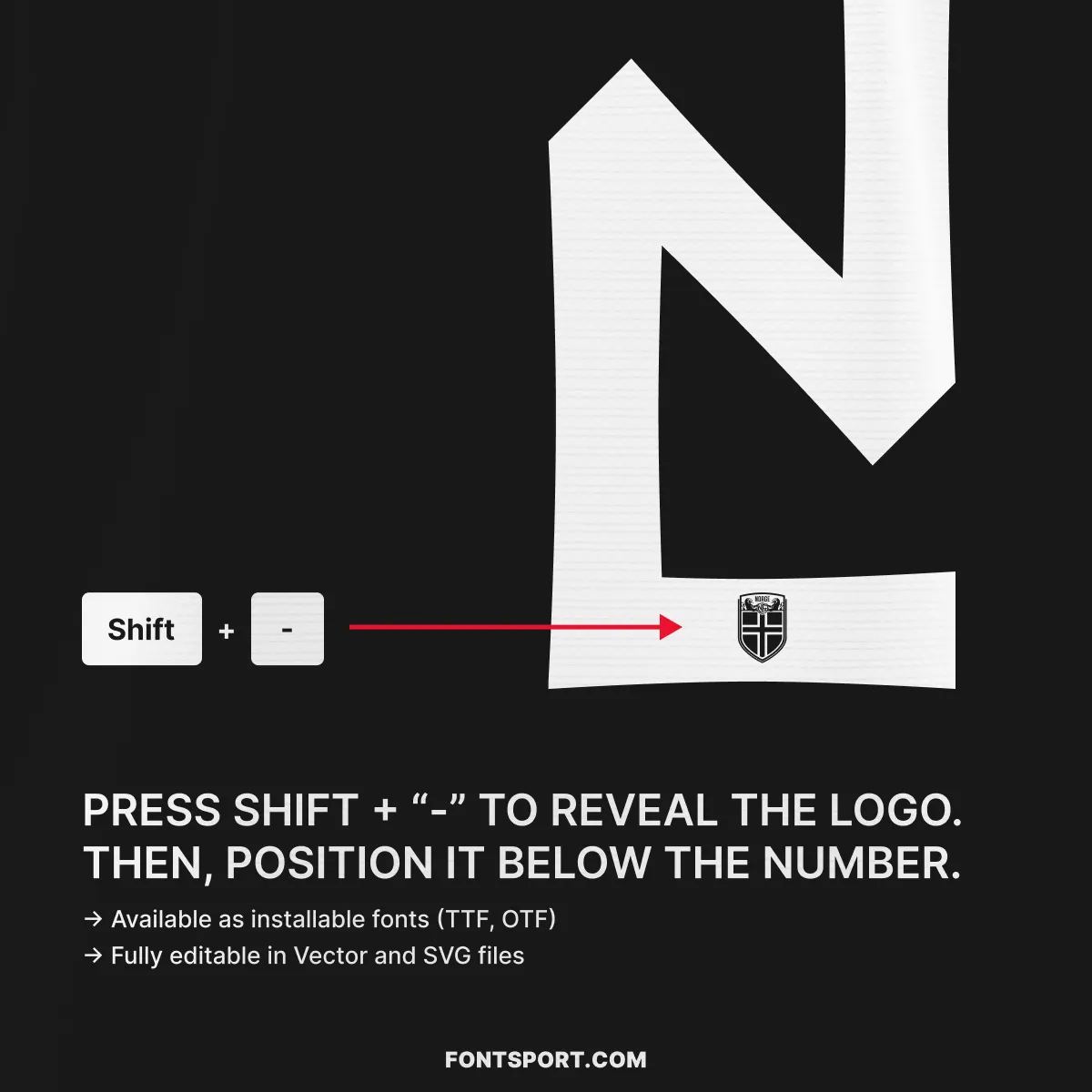 - ✅ NFF crest/logo glyph — activated via Shift + “–” for complete shirt presentation