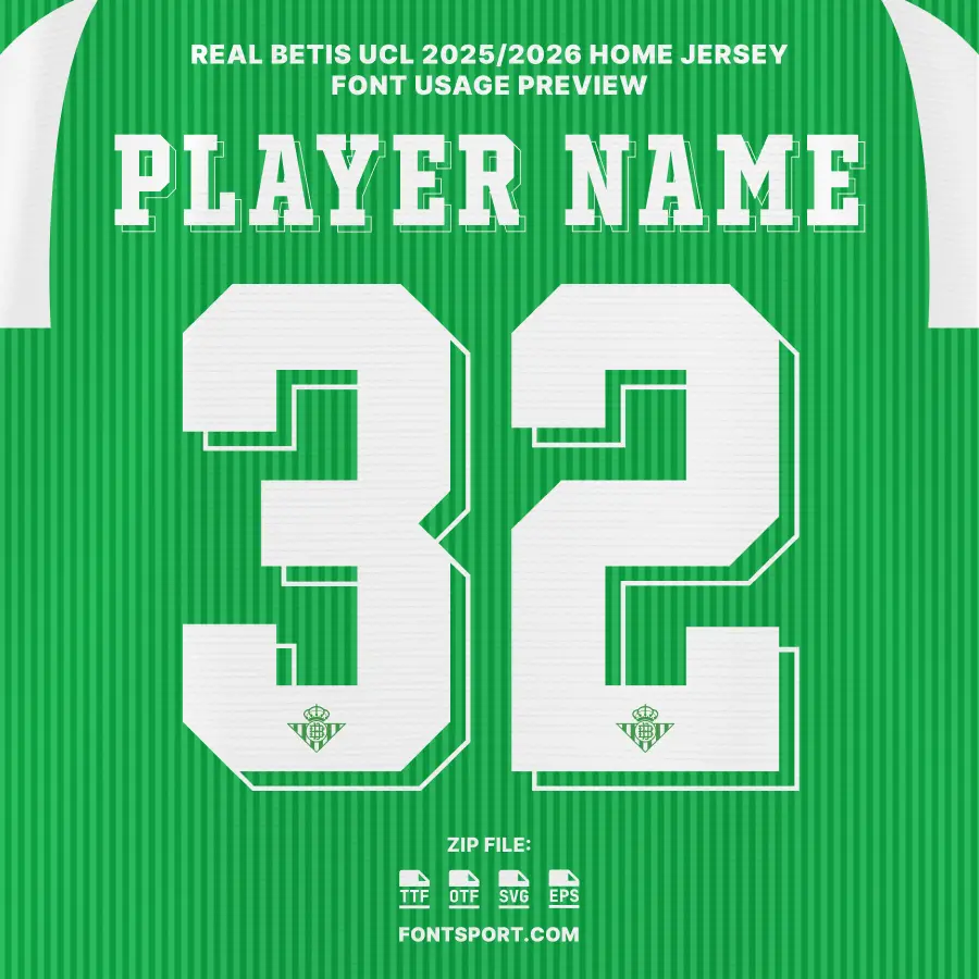 The Real Betis UCL 2025/2026 Font Kit captures the energy, style, and competitive spirit of Real Betis Balompié as a professional football club. Inspired by authentic football typography, this football font is perfect for designers, content creators, and fans who want bold, readable typefaces for sport graphics, jersey designs, posters, or digital content.