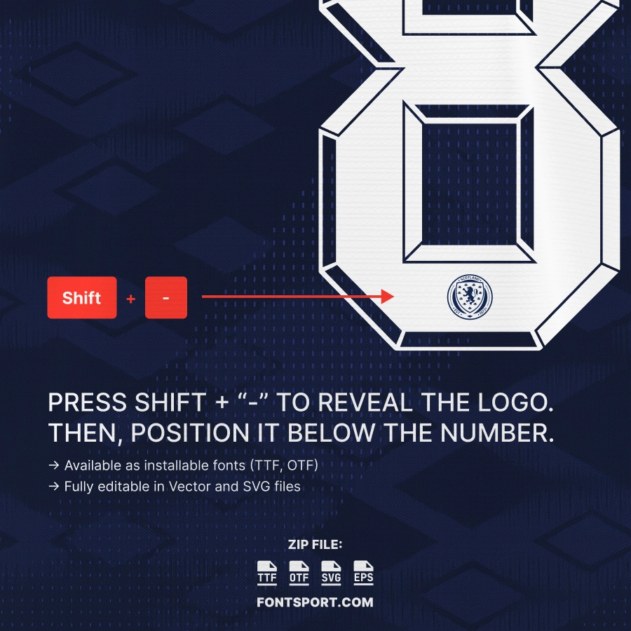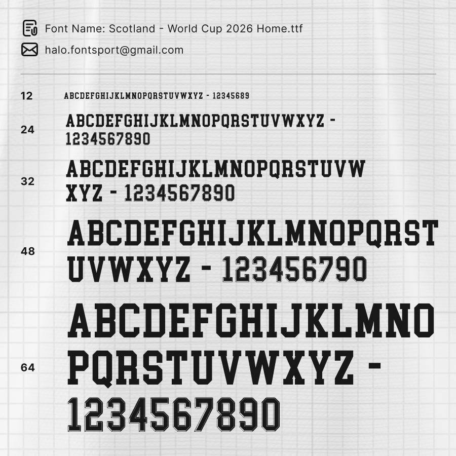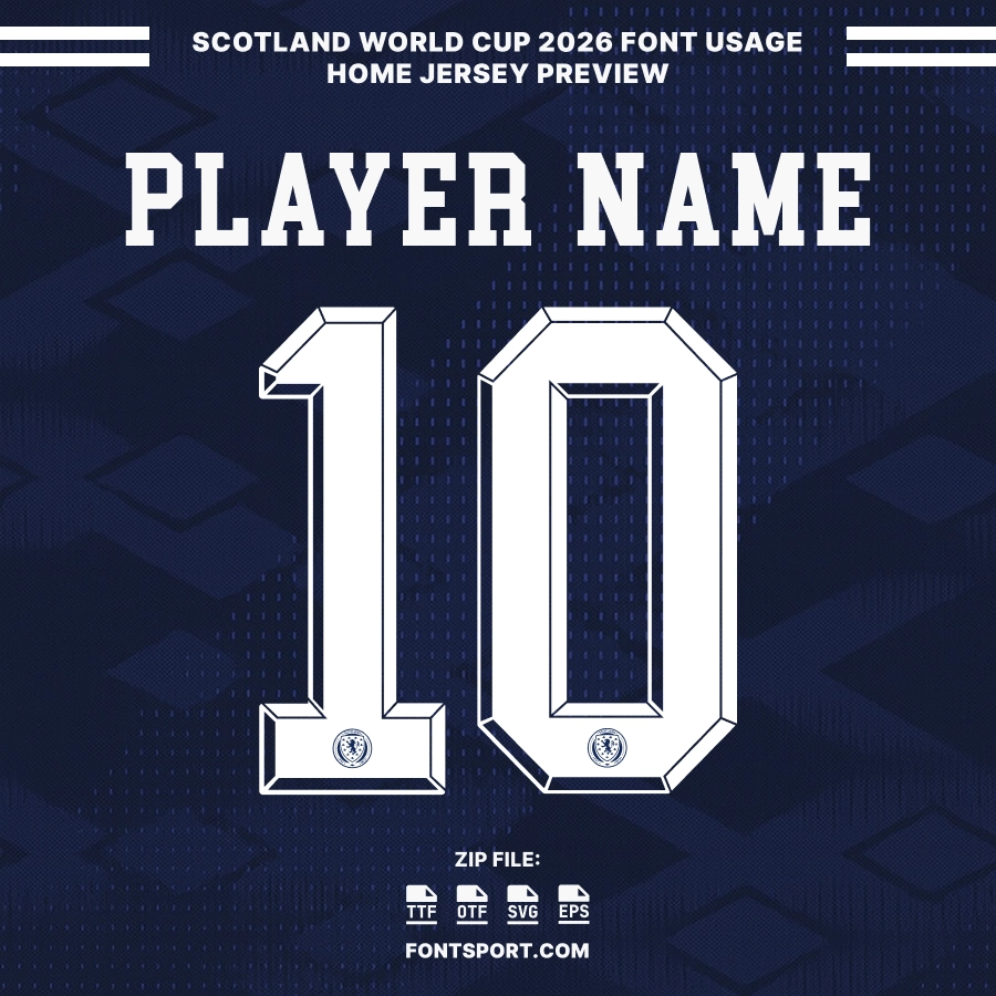 Whether you’re creating matchday posters, jersey customizations, or football-themed digital art, this font delivers the same visual authenticity seen on Scotland’s home kits throughout the tournament.