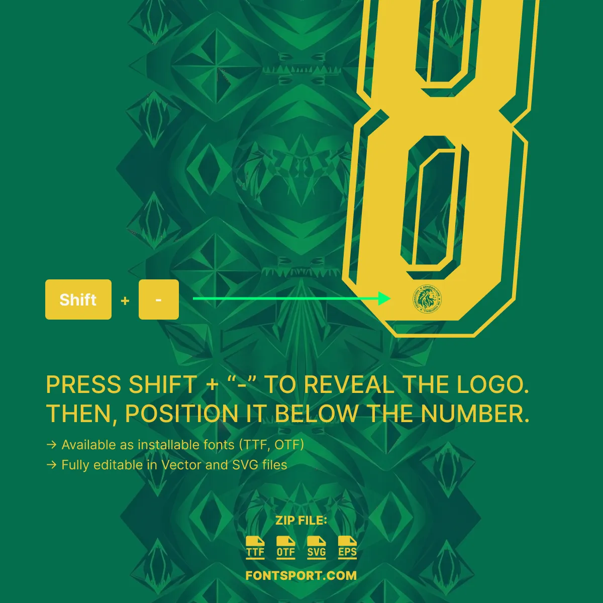 The Senegal Away Font Kit 2026 is an independent design resource created to replicate the structure and feel of the shirt lettering seen in Senegal’s 2026 away presentation. However, it is not produced by, licensed by, or endorsed by the Fédération Sénégalaise de Football, PUMA, or FIFA.