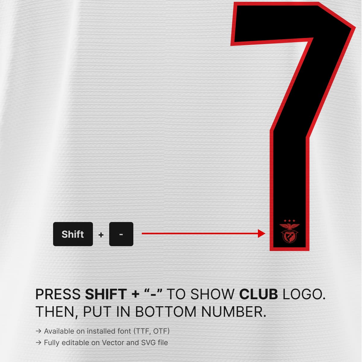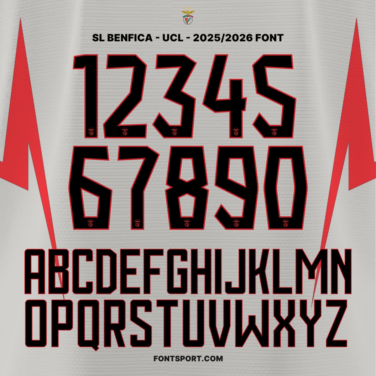 The SL Benfica Away UCL 2025/2026 Font Kit brings the elegance and precision of Benfica’s UEFA Champions League away kits to your creative projects. Inspired by the typography used on Benfica’s away jerseys during the prestigious UCL 2025/2026 season, this football font is perfect for designing custom jerseys, posters, merchandise, and more. Whether you’re a designer, fan, or hobbyist, this font kit allows you to infuse your work with the iconic style of one of Portugal’s most storied clubs.